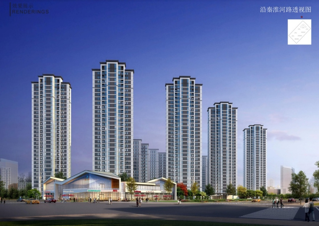 本項目用地處于秦淮河路和奇山路交叉口。西北側(cè)是福萊山市民文化公園,地理位置優(yōu)越,有著良好的自然景觀。項目用地面積42098.4平方米,總建筑面積106964.55平方米,容積率1.799,建筑密度12.23%,綠地率42.00%,由6棟高層住宅組成,共504戶。