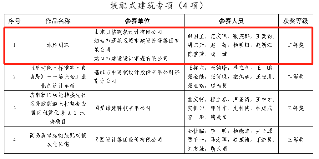 在山東省高品質(zhì)住宅設(shè)計省級競賽中“水岸明珠項目”取得了裝配式建筑專項最高獎項。