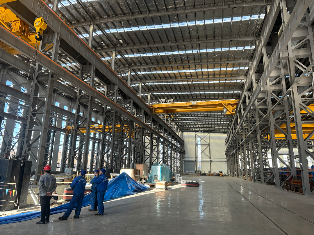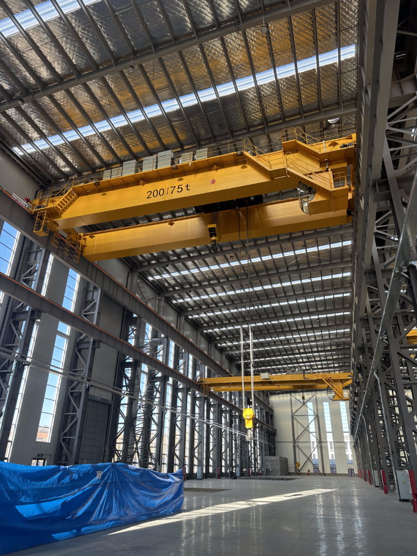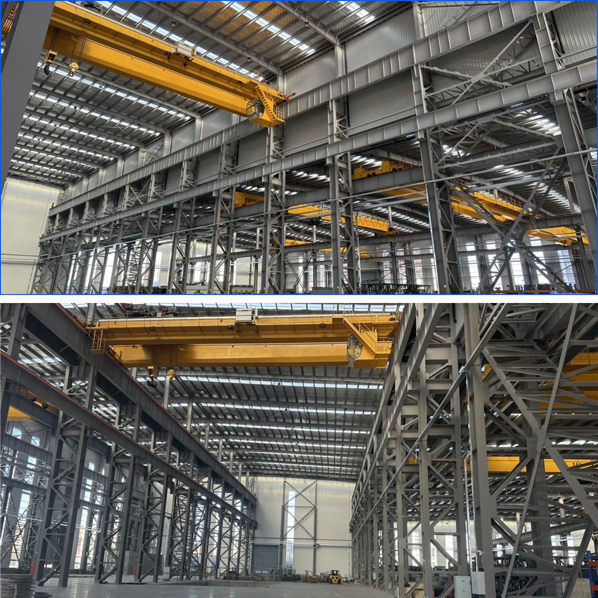 本項(xiàng)目1#廠房檐口高度15m左右,最大跨度25m,單臺(tái)吊車最大噸位32t,為單層鋼結(jié)構(gòu)廠房;2#廠房檐口高度26m,最大跨度32m,單臺(tái)吊車最大噸位200t,為重鋼廠房。
